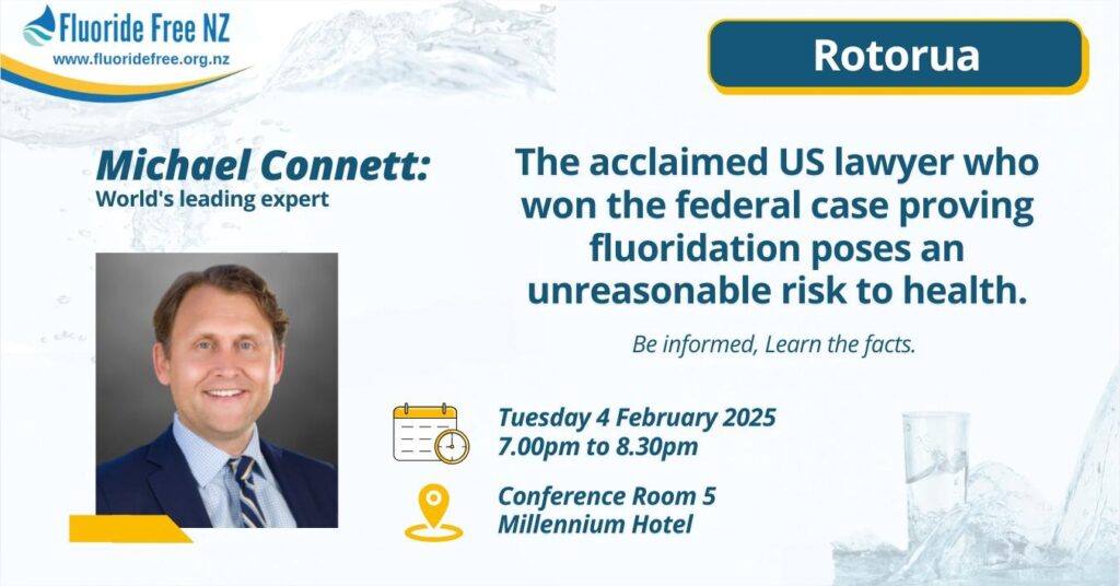 Mary Byrne and Dr Lawrie Brett from Fluoride Free NZ will present the latest evidence on fluoride and IQ at public speaking time (5 minutes each).